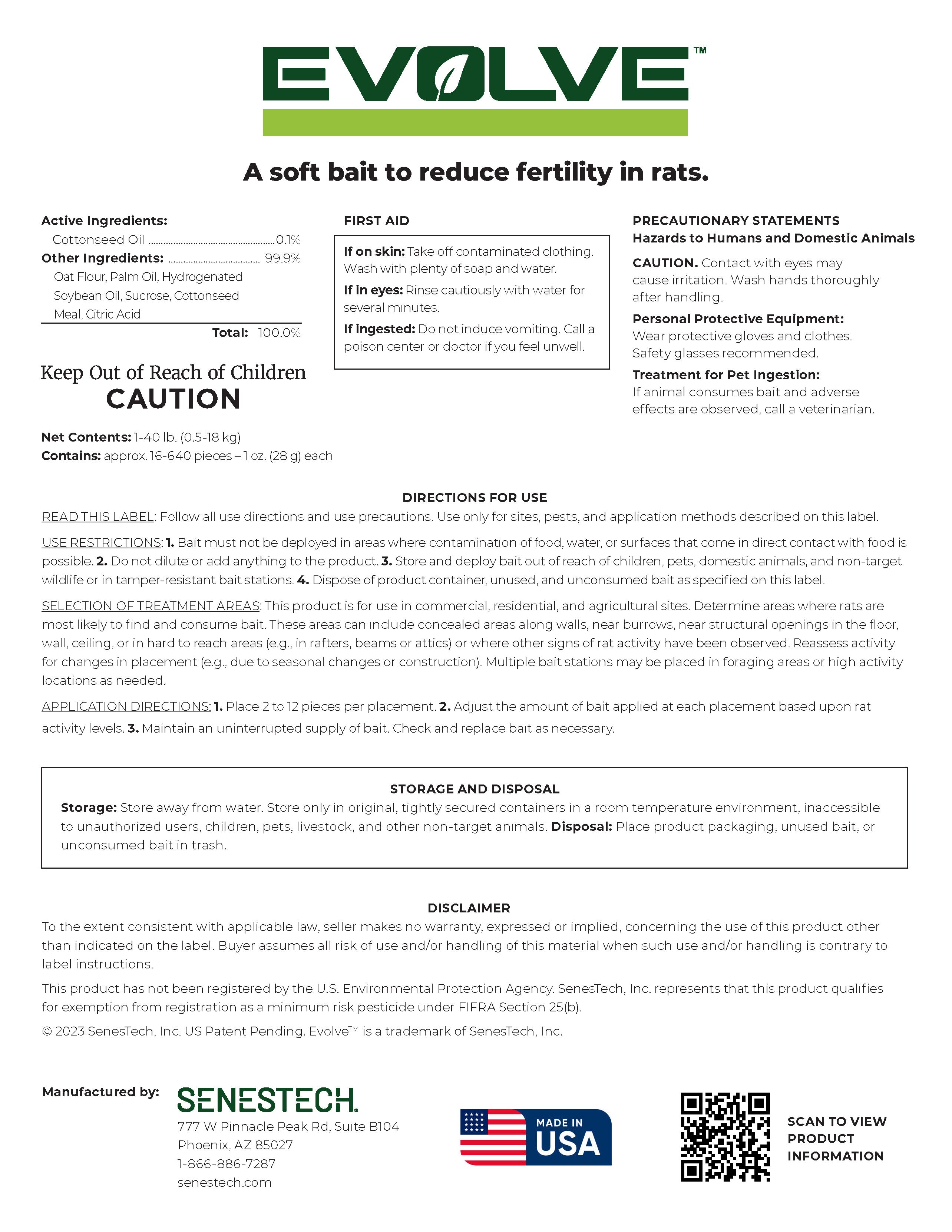 Evolve soft bait interferes with the reproductive mechanisms in both male and female rats for pest control. Adding it to your Integrated Pest Management (IPM) program targets the source of an infestation for long-term success. As a FIFRA Section 25(b) exempt product it poses little or no risk to people, pets, and predators.